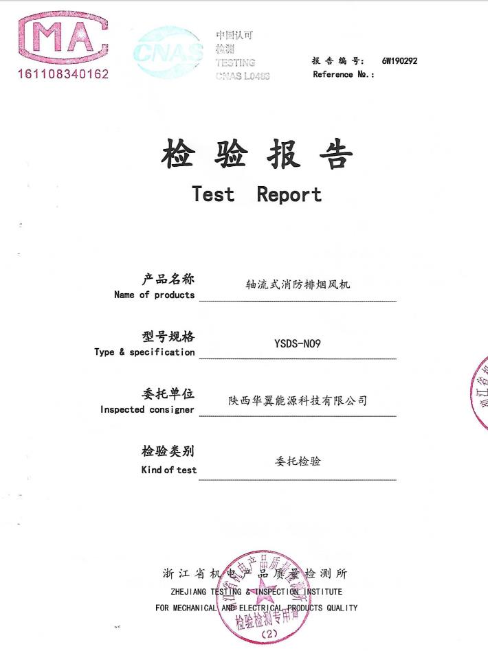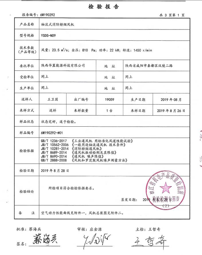 軸流式消防排煙風機檢驗報告